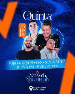 Quinta-feira (23): Marcos Semeadores, Nengo Vieira, Lucas Reissil e Banda Valores;