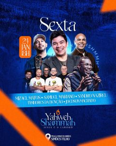 Sexta-feira (24): Mizael Mattos, Samuel Mariano, Sandro Nazireu, Tambores da Bênção e Joedson Machado;