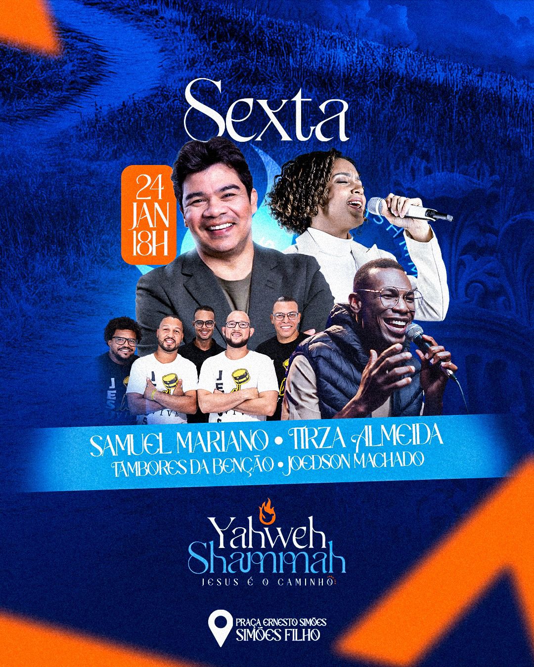 A Semana da Cultura Gospel continua com sua programação intensa e inspiradora, e hoje, sexta-feira (24), Simões Filho se prepara para a 6ª noite do evento Yahweh Shammah, que promete ser mais uma noite inesquecível de louvor e celebração.