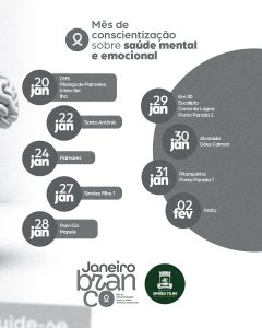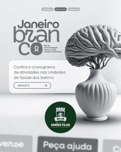 Simões Filho está mobilizada pelo Janeiro Branco, mês de conscientização sobre a importância da saúde mental e emocional. A Prefeitura, por meio das Unidades de Saúde, preparou uma série de ações que acontecem em diversos bairros da cidade, levando atendimentos e atividades voltadas ao bem-estar da população.