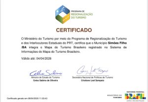 Simões Filho, cidade da Região Metropolitana de Salvador, teve a sua permanência confirmada no Mapa do Turismo Brasileiro, instrumento do Ministério do Turismo que identifica os municípios com potencial turístico e que adotam o setor como estratégia de desenvolvimento econômico. A certificação é válida até abril de 2026 e reforça o compromisso da gestão municipal com o fortalecimento do turismo local.
