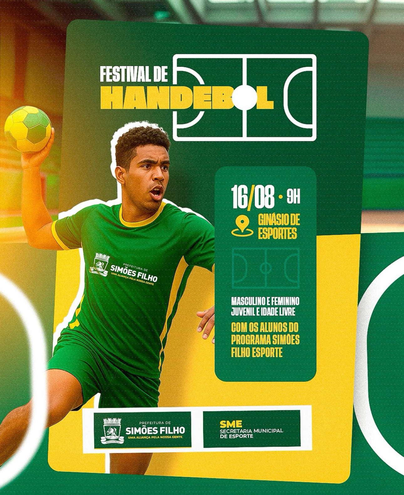 A Prefeitura de Simões Filho, por meio da Secretaria de Esporte e Lazer (SME), promove neste sábado (16) o Festival de Handebol, reunindo atletas do Programa Simões Filho Esporte. O evento acontece a partir das 9h, no Ginásio de Esportes do CIA 2, e contará com disputas nas categorias masculino e feminino, nos níveis juvenil e idade livre.