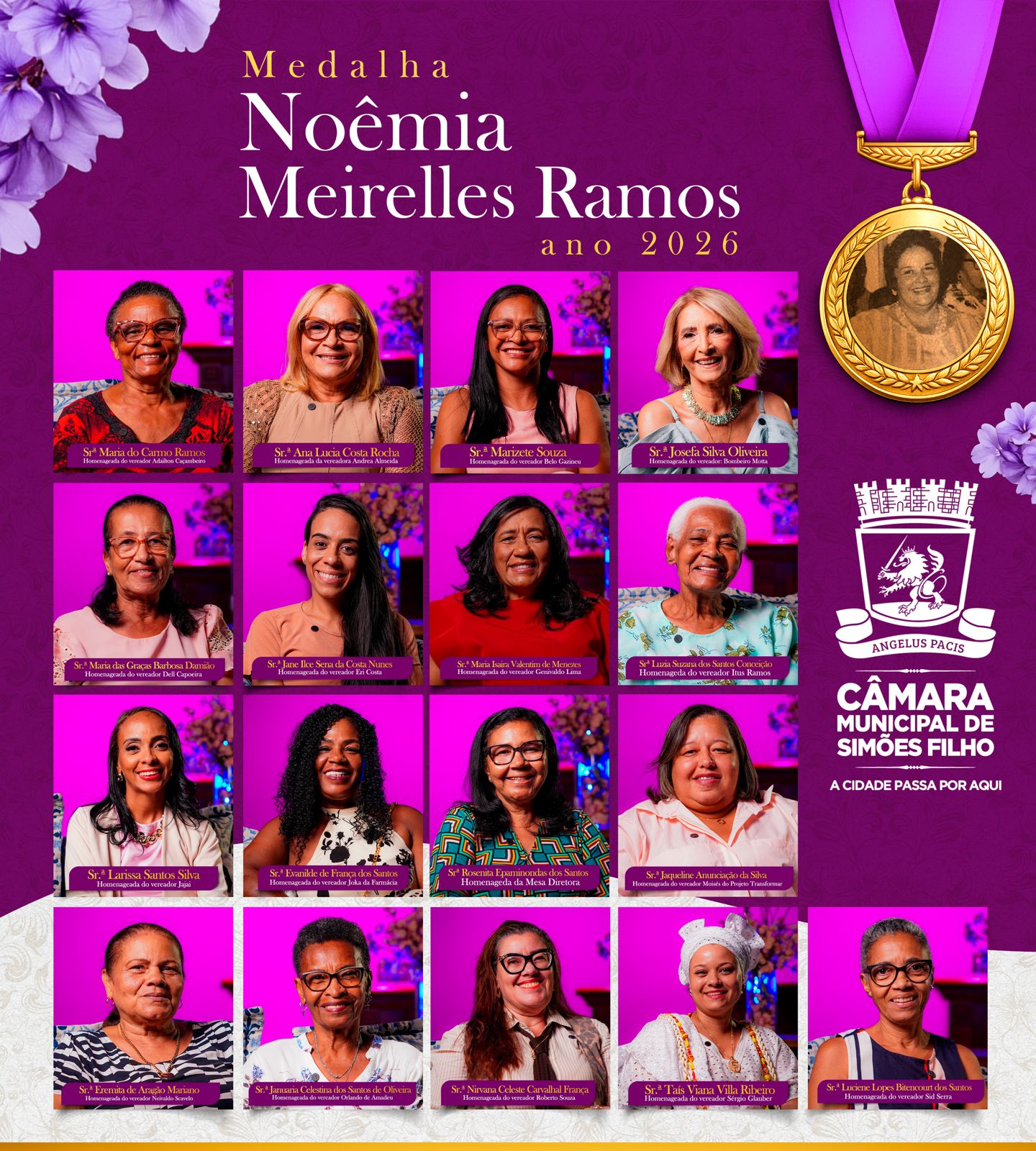 A Câmara Municipal de Simões Filho convida toda a população para participar de uma noite especial de reconhecimento e celebração: a cerimônia de entrega da Medalha Noêmia Meirelles Ramos, que acontecerá nesta quinta-feira, 26 de março, às 18h, no plenário da Casa Legislativa.